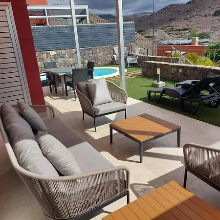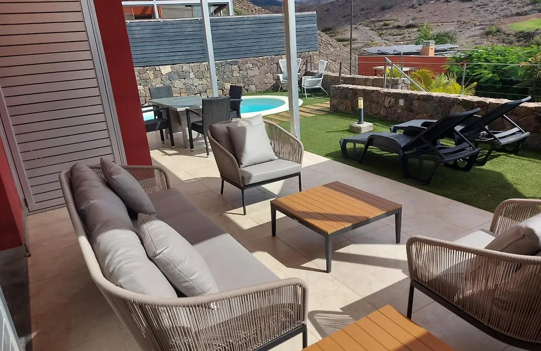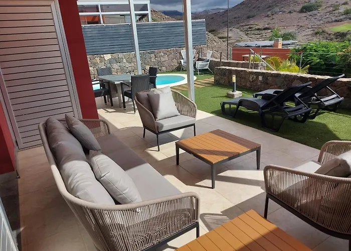 Situata a una distanza di 4 km dalla Playa Nudista Montaña Arena, la Villa Vista Golf Salobre - Maspalomas Self-Sufficient With Pool Heating offre una terrazza con vista sulle montagne.